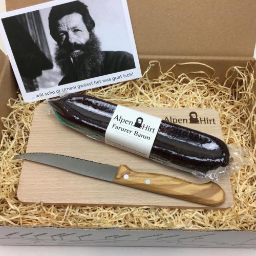 Vor dem Interview wurde aber zuerst einmal degustiert. «Das ist der Salsiz vom Gustav, vom Stier. Jedes Produkt ist anders, weil auch jedes Tier anders ist. Der Salsiz ist etwas fester. Ob man das mag oder nicht, ist Geschmackssache.