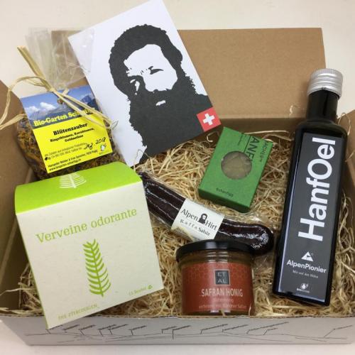 Neben köstlichen Bündner Trockenfleisch-Spezialitäten und Hanfprodukten aus Eigenproduktion findest du auch ausgesuchte Spezialitäten von anderen Kleinproduzenten.
